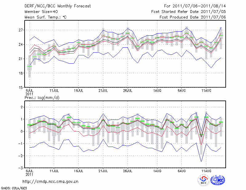 天 水 (LAT:34.58 LON:105.75) 2011-07-06        预测