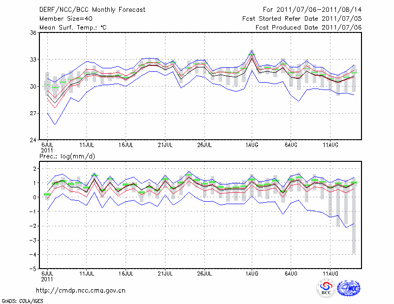 南 昌 (LAT:28.60 LON:115.92) 2011-07-06        预测