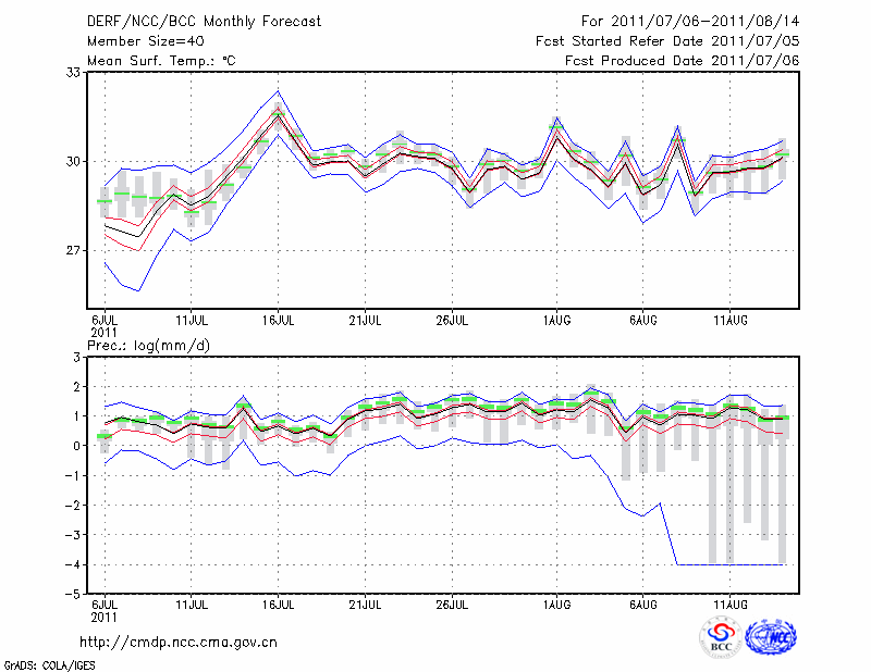 温 州 (LAT:28.02 LON:120.67) 2011-07-06        预测