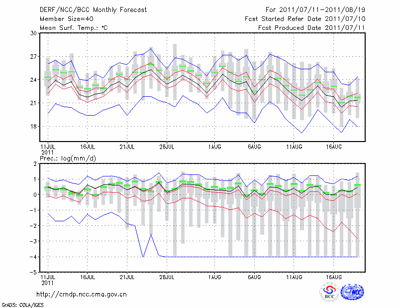 牡 丹 江 (LAT:44.57 LON:129.60) 2011-07-11        预测