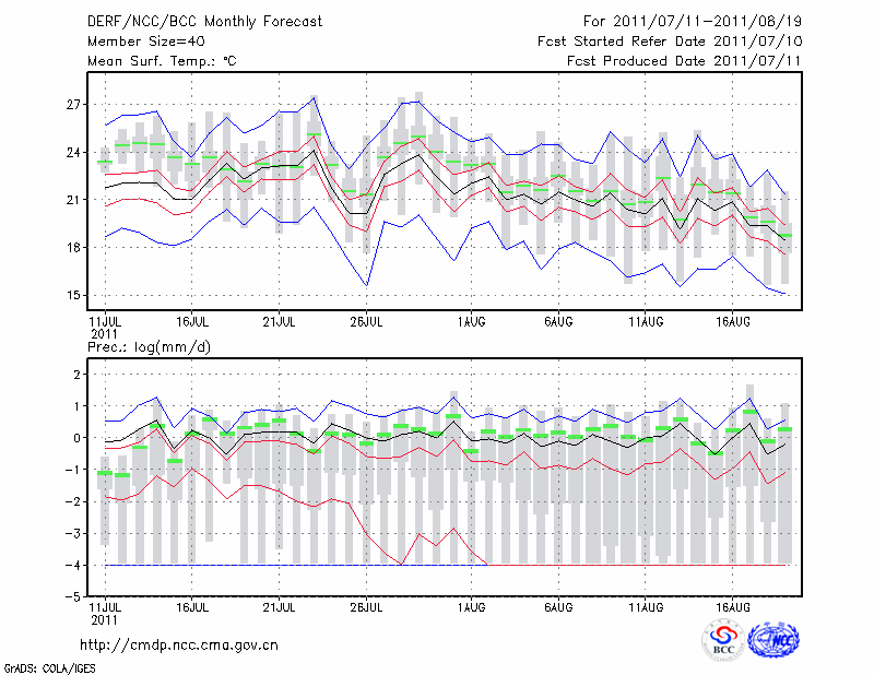 锡林浩特 (LAT:43.95 LON:116.07) 2011-07-11        预测