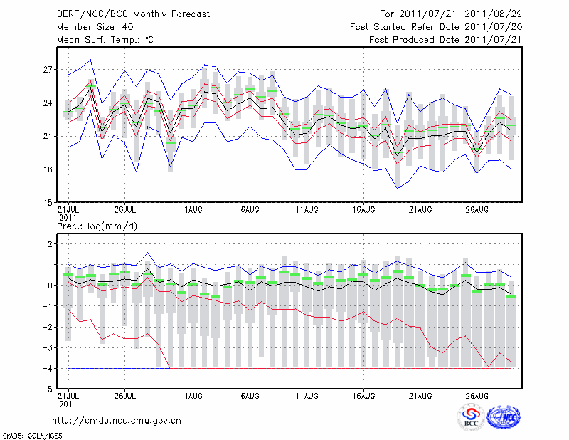 乌兰浩特 (LAT:46.08 LON:122.05) 2011-07-21        预测
