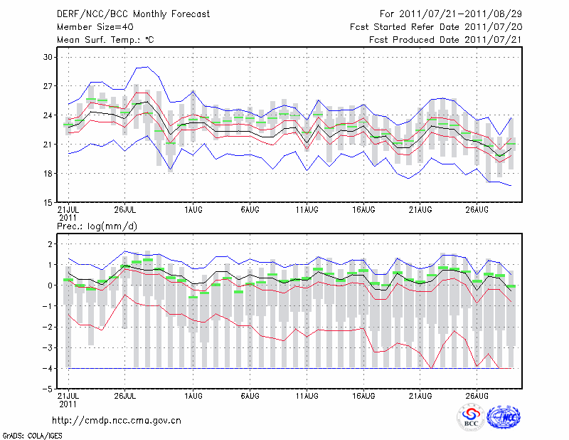 呼和浩特 (LAT:40.82 LON:111.68) 2011-07-21        预测