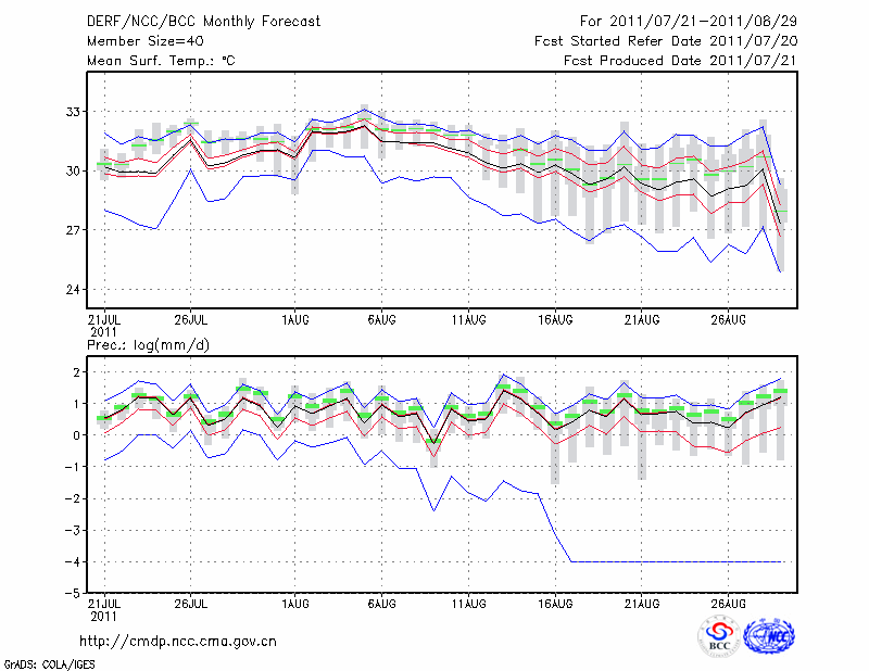 岳 阳 (LAT:29.38 LON:113.08) 2011-07-21        预测