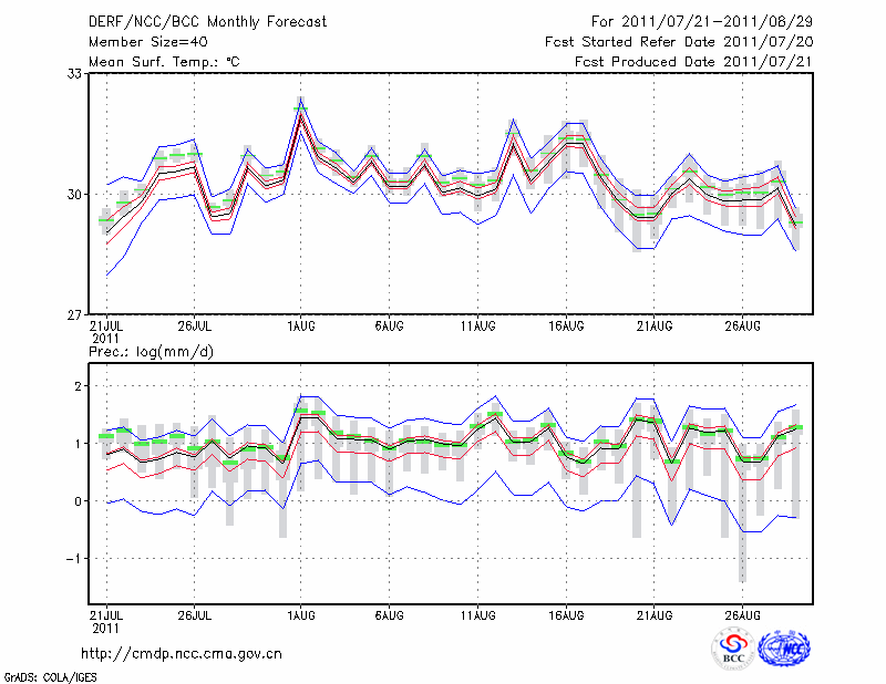 福 州 (LAT:26.08 LON:119.28) 2011-07-21        预测