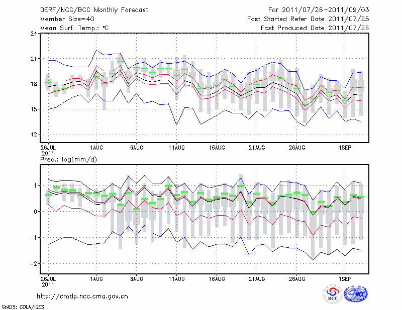 西 宁 (LAT:36.62 LON:101.77) 2011-07-26        预测