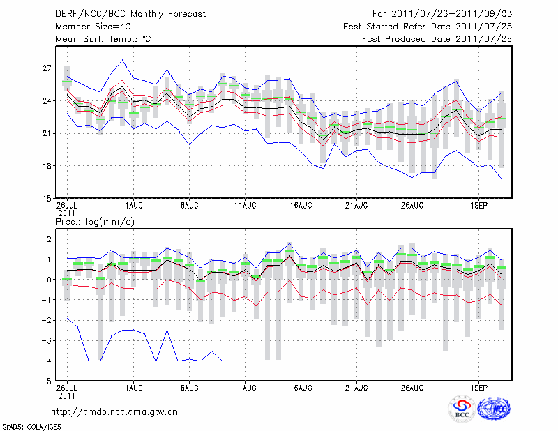 延 安 (LAT:36.60 LON:109.50) 2011-07-26        预测