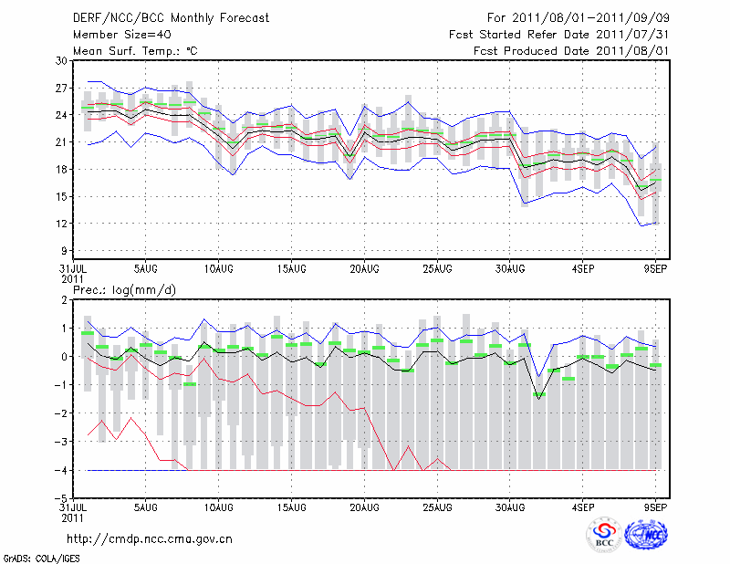 齐齐哈尔 (LAT:47.38 LON:123.92) 2011-08-01        预测