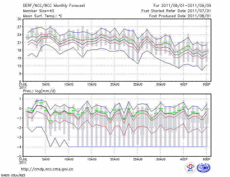 阿 勒 泰 (LAT:47.73 LON:88.08) 2011-08-01        预测