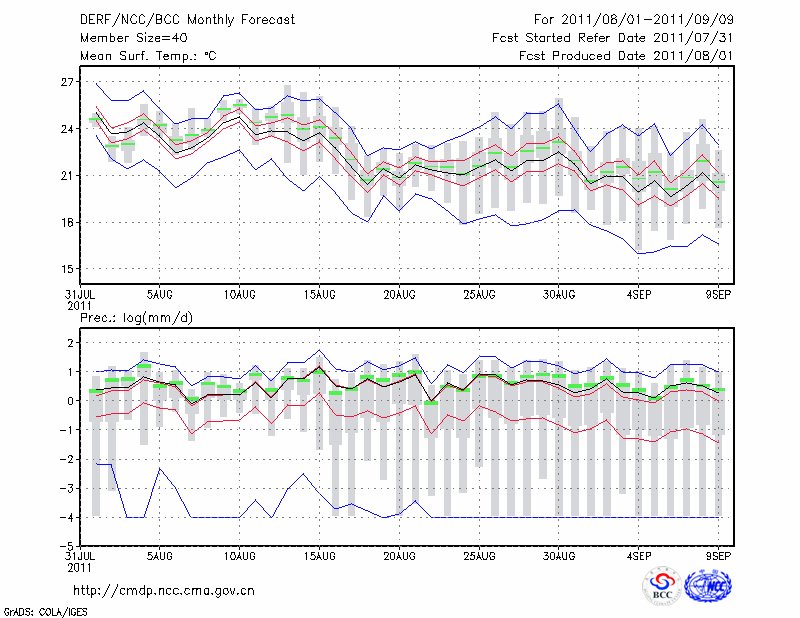 延 安 (LAT:36.60 LON:109.50) 2011-08-01        预测
