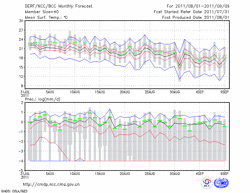 锡林浩特 (LAT:43.95 LON:116.07) 2011-08-01        预测