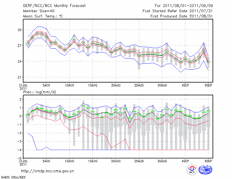 潍 坊 (LAT:36.70 LON:119.08) 2011-08-01        预测