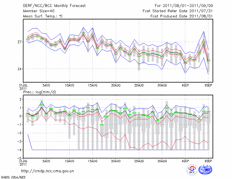 青 岛 (LAT:36.07 LON:120.33) 2011-08-01        预测