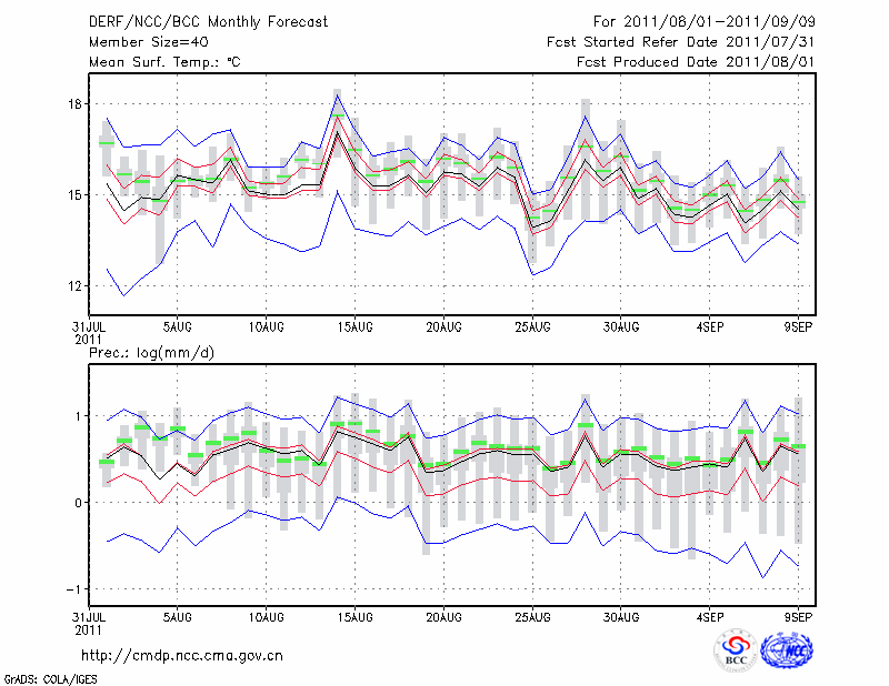 甘 孜 (LAT:31.62 LON:100.00) 2011-08-01        预测