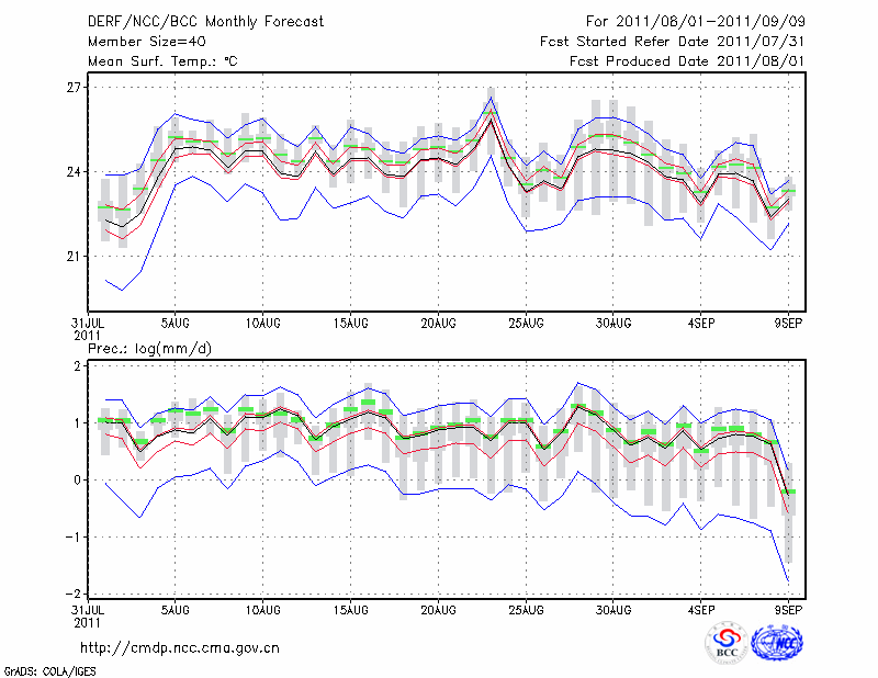 西 昌 (LAT:27.90 LON:102.27) 2011-08-01        预测