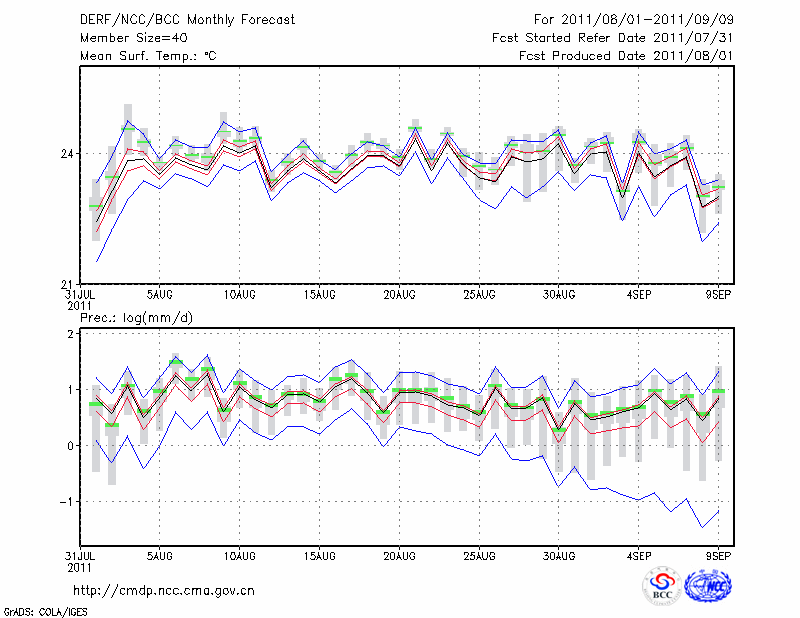 蒙 自 (LAT:23.38 LON:103.38) 2011-08-01        预测