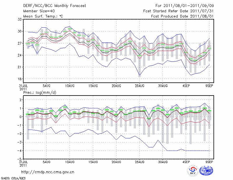 西 安 (LAT:34.30 LON:108.93) 2011-08-01        预测