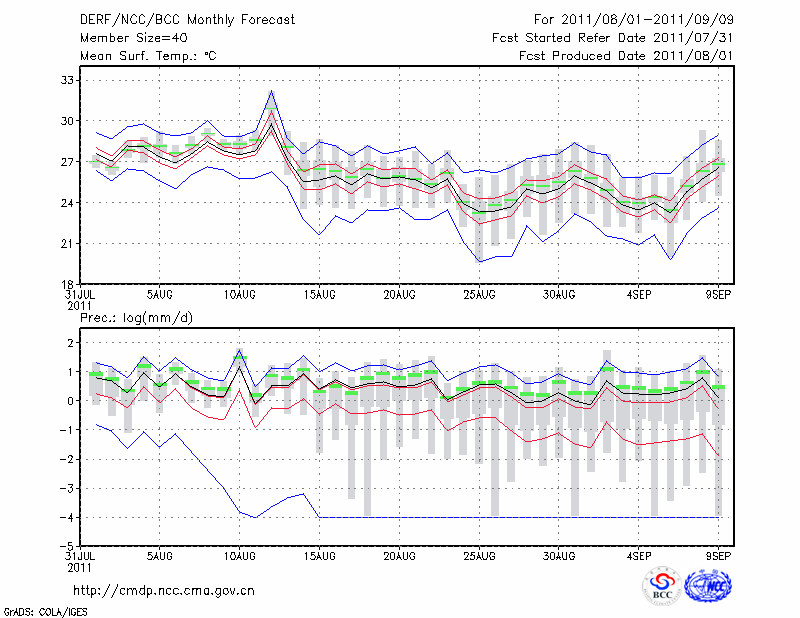 郑 州 (LAT:34.72 LON:113.65) 2011-08-01        预测