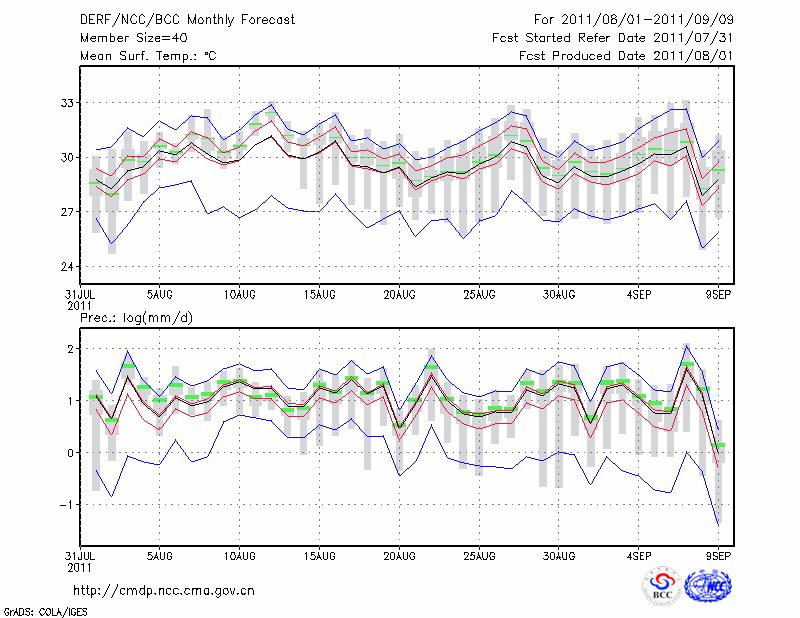 内 江 (LAT:29.58 LON:105.05) 2011-08-01        预测
