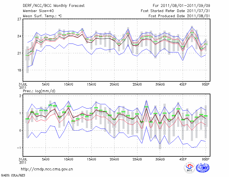 毕 节 (LAT:27.30 LON:105.23) 2011-08-01        预测