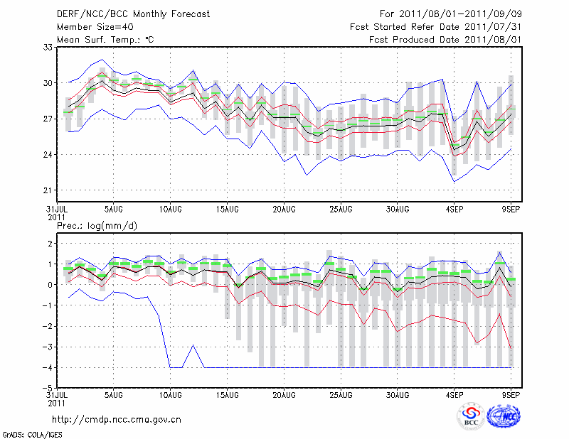 阜 阳 (LAT:32.93 LON:115.83) 2011-08-01        预测