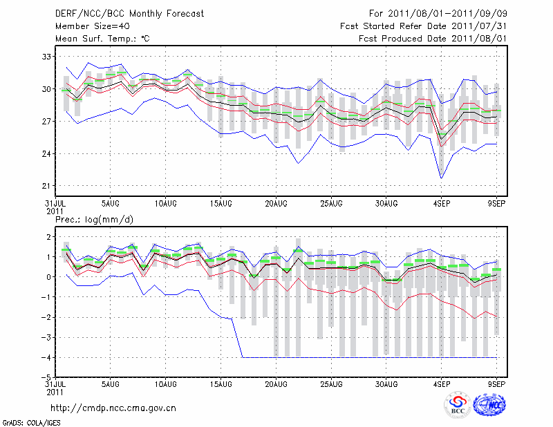 合 肥 (LAT:31.87 LON:117.23) 2011-08-01        预测