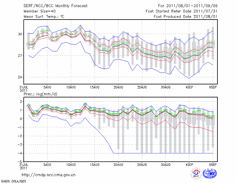 屯 溪 (LAT:29.71 LON:118.28) 2011-08-01        预测