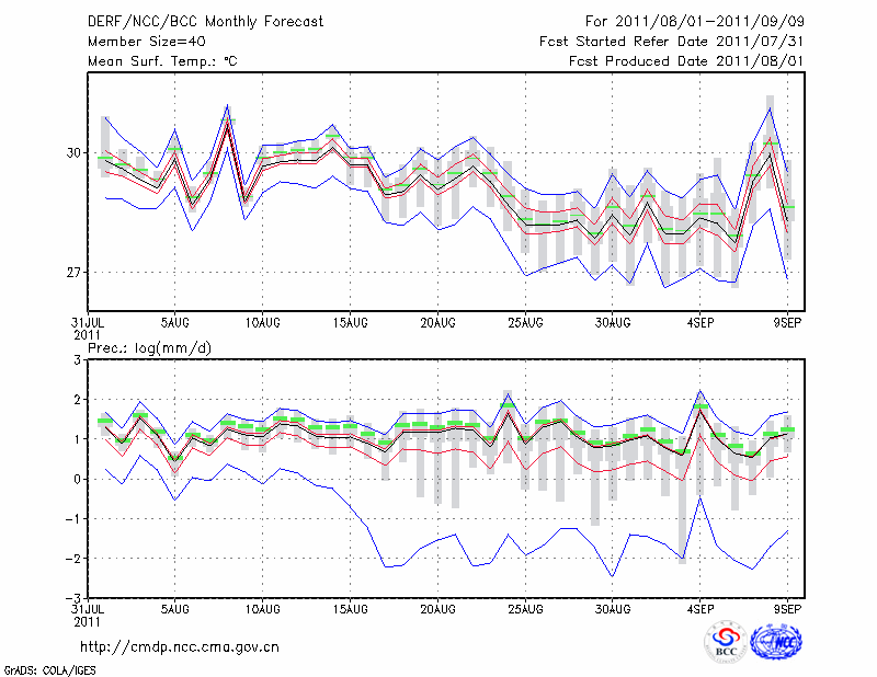 温 州 (LAT:28.02 LON:120.67) 2011-08-01        预测