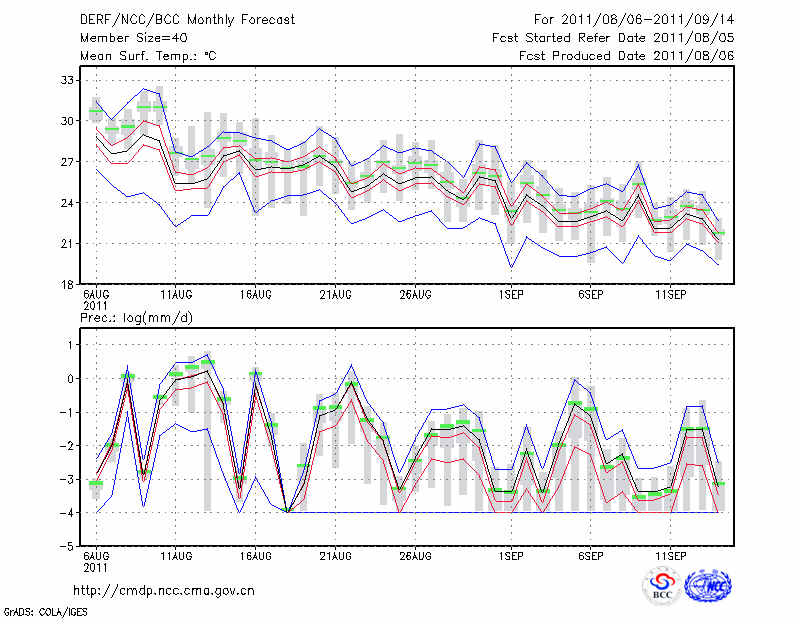 若 羌 (LAT:39.03 LON:88.17) 2011-08-06        预测