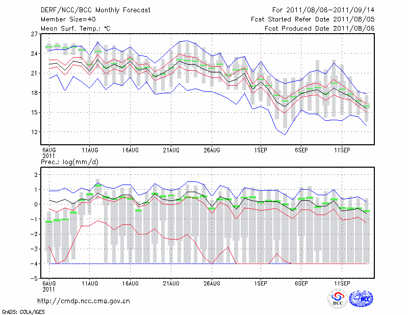 呼和浩特 (LAT:40.82 LON:111.68) 2011-08-06        预测