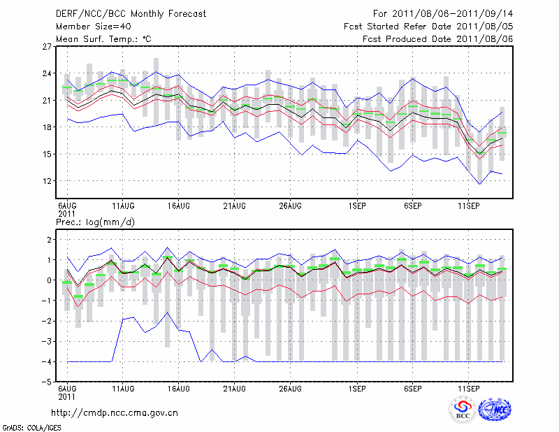 西 峰 镇 (LAT:35.73 LON:107.63) 2011-08-06        预测