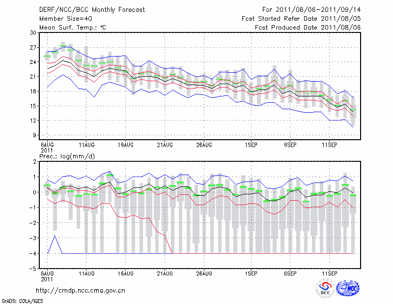 牡 丹 江 (LAT:44.57 LON:129.60) 2011-08-06        预测
