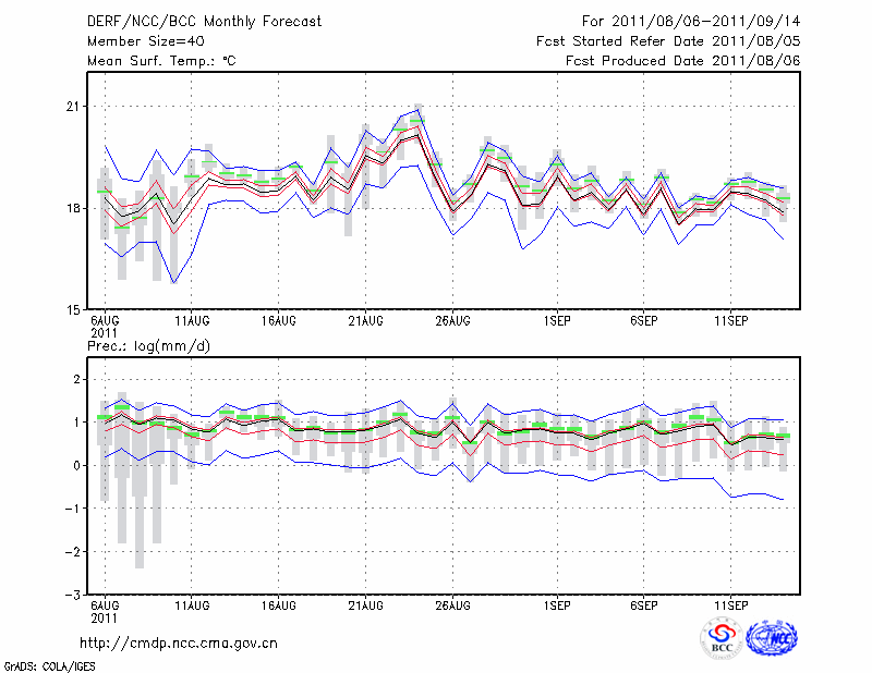丽 江 (LAT:26.83 LON:100.47) 2011-08-06        预测