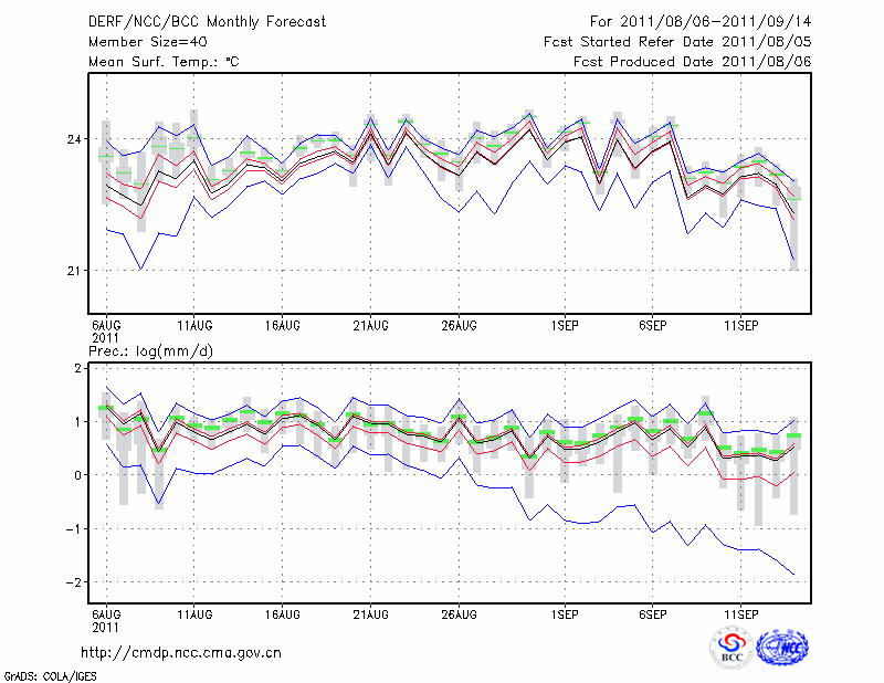 蒙 自 (LAT:23.38 LON:103.38) 2011-08-06        预测