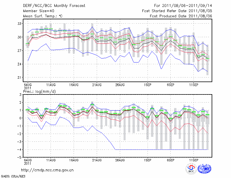 岳 阳 (LAT:29.38 LON:113.08) 2011-08-06        预测