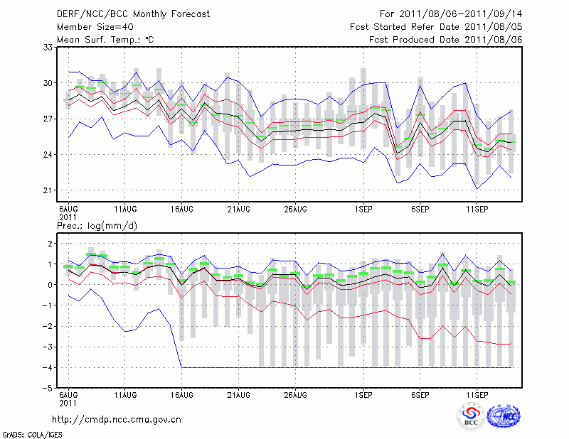 阜 阳 (LAT:32.93 LON:115.83) 2011-08-06        预测