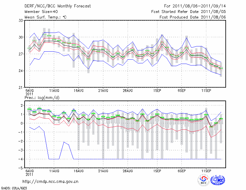 东 台 (LAT:32.87 LON:120.32) 2011-08-06        预测