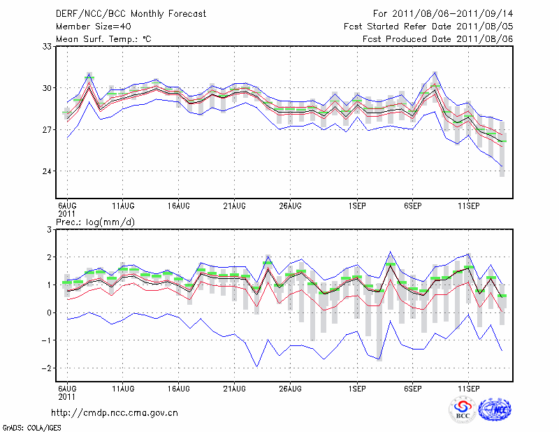 温 州 (LAT:28.02 LON:120.67) 2011-08-06        预测