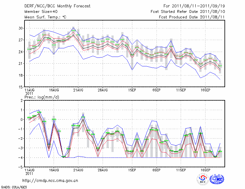 若 羌 (LAT:39.03 LON:88.17) 2011-08-11        预测