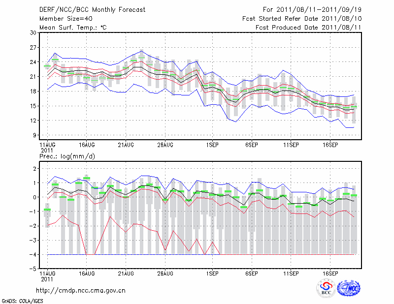 呼和浩特 (LAT:40.82 LON:111.68) 2011-08-11        预测