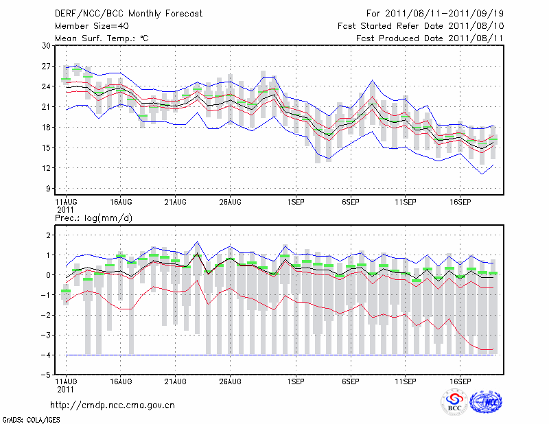 榆 林 (LAT:38.23 LON:109.70) 2011-08-11        预测