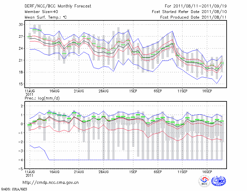 临 汾 (LAT:36.05 LON:111.32) 2011-08-11        预测