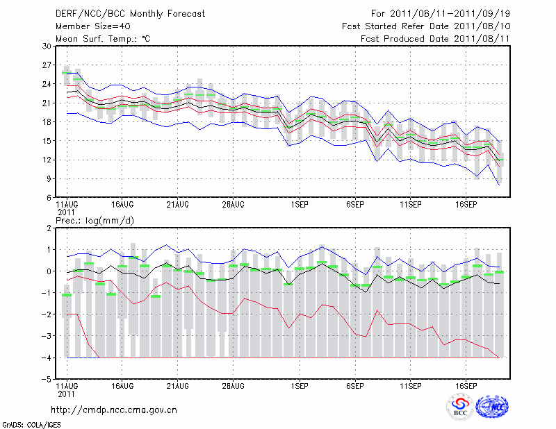 林 东 (LAT:43.98 LON:119.40) 2011-08-11        预测