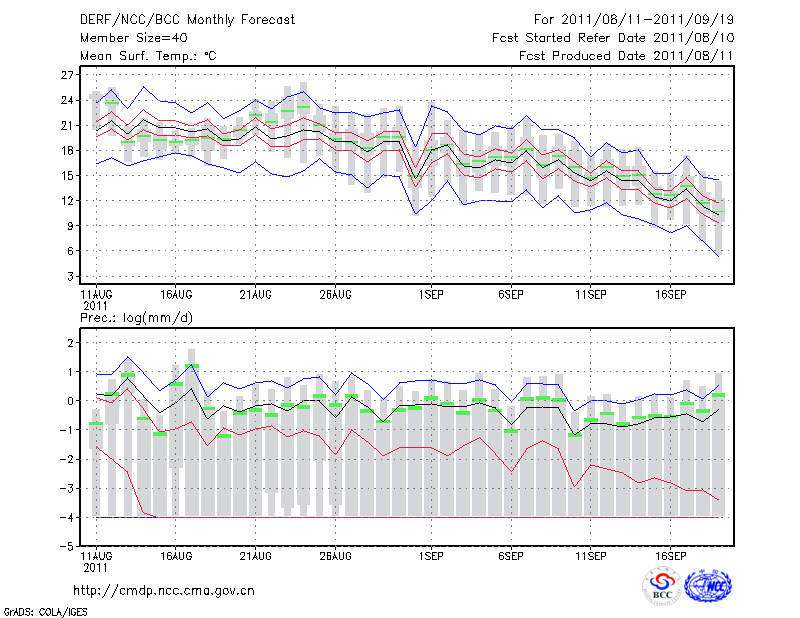 锡林浩特 (LAT:43.95 LON:116.07) 2011-08-11        预测