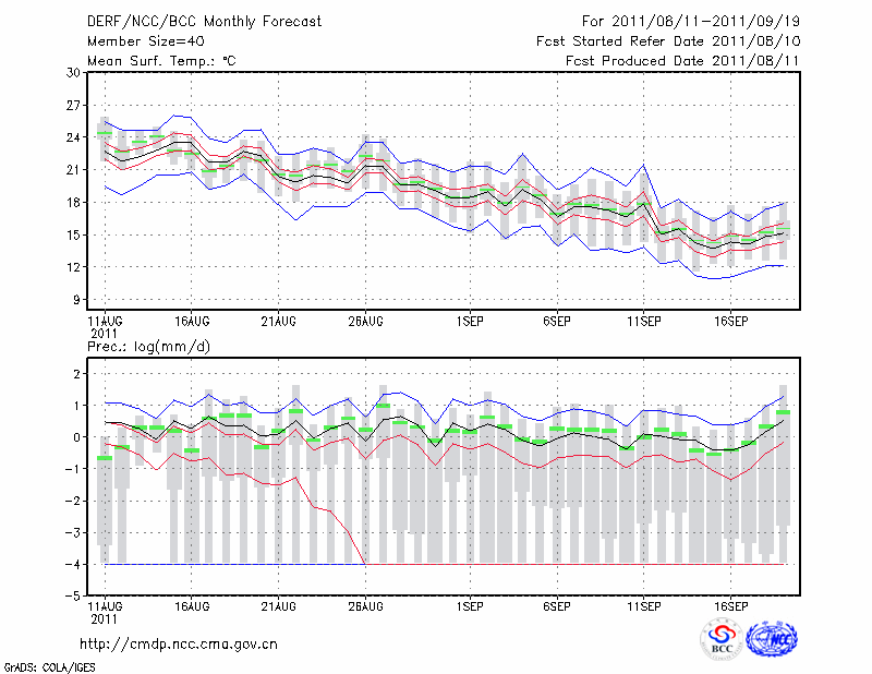 延 吉 (LAT:42.88 LON:129.47) 2011-08-11        预测