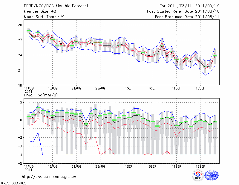 潍 坊 (LAT:36.70 LON:119.08) 2011-08-11        预测