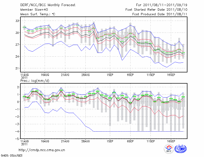 岳 阳 (LAT:29.38 LON:113.08) 2011-08-11        预测