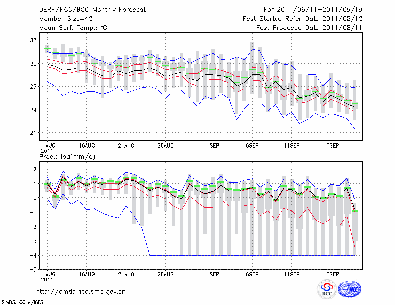 安 庆 (LAT:30.53 LON:117.05) 2011-08-11        预测