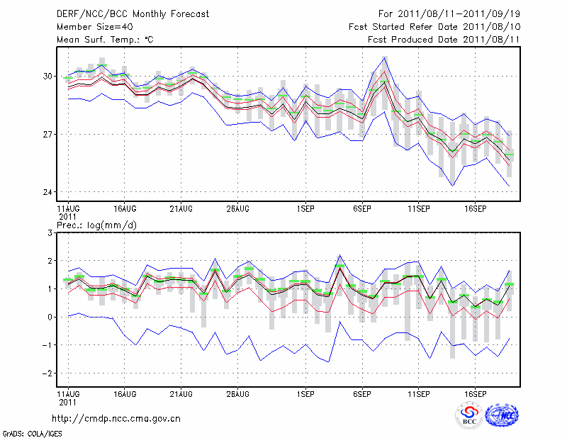 温 州 (LAT:28.02 LON:120.67) 2011-08-11        预测