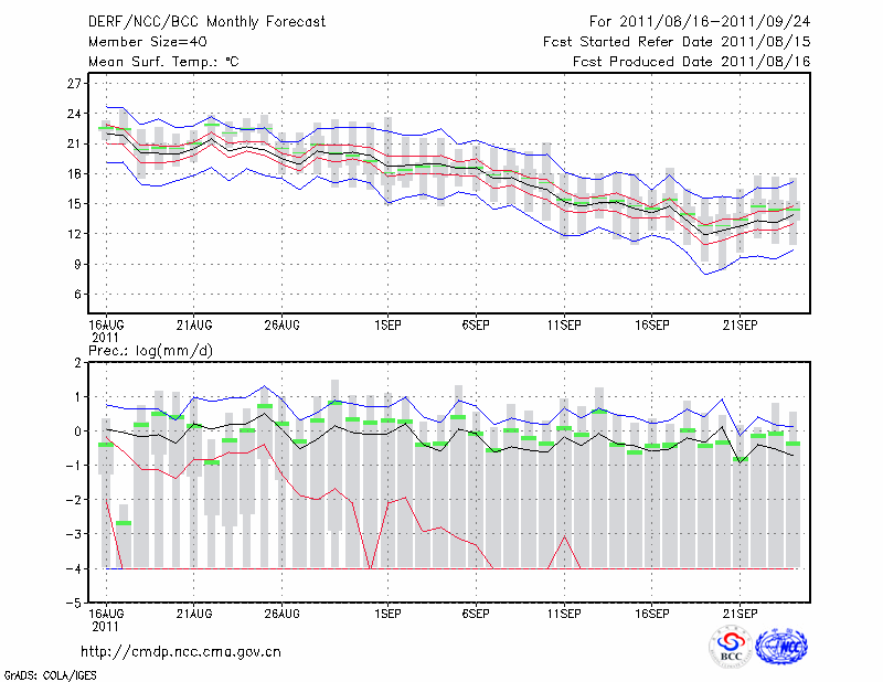哈 尔 滨 (LAT:45.75 LON:126.77) 2011-08-16        预测